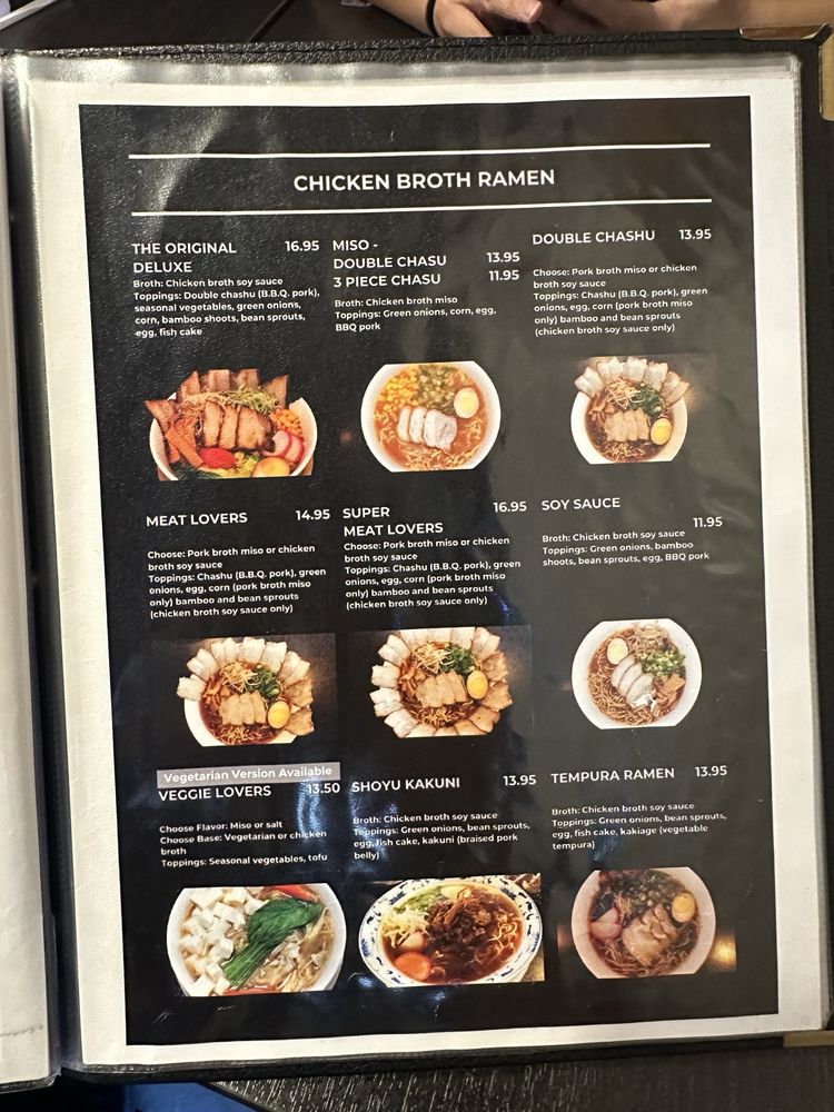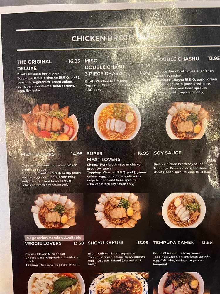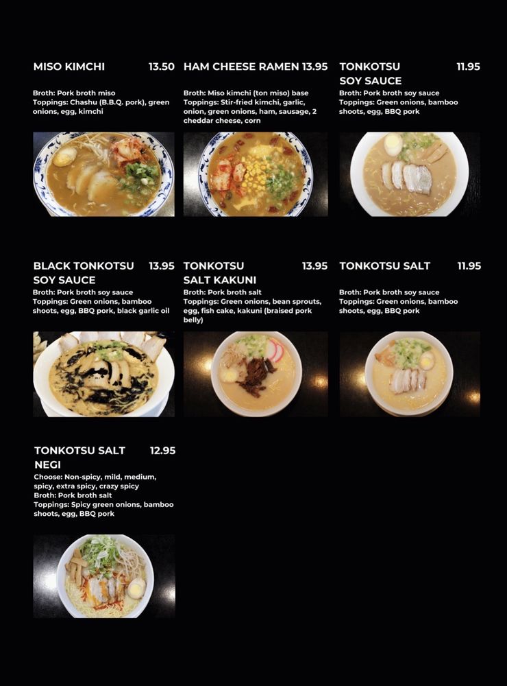 For our meat lovers! Enjoy extra servings of chashu (BBQ pork). Toppings include chashu, green onions, egg, corn (pork broth miso only), bamboo, and bean sprouts (chicken broth soy sauce only).